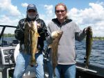 Today's trip was more than just another 5 hour charter trip, Kenneth got the chance to spend some quality time with a good friend of his wife's and her father. Cori and Terry were on board today, and even though the fish didn't cooperate the way he would have liked, they still had a good time, and the weather was awesome. They left the Gladstone Yacht Harbor around 6:30 a.m. and headed north to try and figure out those goofy walleyes. They started trolling crankbaits where they caught a couple of fish yesterday, and the fish sure were there, however, they weren't in a biting mood. We then switched to Walleyes Choice (http://www.walleyeschoice.com) harnesses trolled behind bottom bouncers and the fish slowly started coming to the boat. I-62 was the best color for them today. Unfortunately, most of the fish were on the small side, but they did get some nice quality fish with one at 26, another at 25, a 22 1/2, and an 18. The mission was to get enough for a fish fry tonight...mission accomplished! The fish seemed to get more active once the wind started blowing a little, and Kenneth thought if they had stayed out longer they could have had a better catch. He didn't find numbers of fish until about an hour to go in the trip. Here's a picture of Cori and her dad with some beautiful walleyes! Sure is nice to finally have some warm weather. The water temperature finally got up over the 60 degree mark...it's about time!!! Good luck from all of us in the Bay de Noc area.