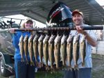My wife and I went out with my brother Kenneth yesterday evening. We left the Gladstone Harbor a little after 4:30 and was back here at the resort by 9:00. We had a great time even though Kenneth kicked our butts! I think he had 3 keepers before either Theresa or I landed our 1st fish. He went on to catch his limit in a pretty short time. Theresa and I just plodded along catching one here and there as we watched Kenneth release fish after fish! She was having a hard time keeping the crawler on her jig. I started out trying all different forms of Berkley Gulp, but eventually had to switch to the real thing. There have been times I have done really good on Gulp, but yesterday, real nightcrawlers definitely made a difference. Chartreuse seemed to be the best color on the jigs. We saw water temperatures from 58-61 degrees and had the best action in the 61 degree water. All in all, a great evening on Little Bay de Noc. See you on the water…