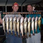 My brother Kenneth and I got out for awhile this evening and found a pretty good bite over all. We found water temperatures from 67-70 degrees. Kenneth went up on me 2 zip fairly quickly. But then I got in gear and we were soon tied at 2 keepers each. Then a short while later I moved ahead by catching the two biggest (19 and 20 inches) on 2 successive casts (we cast the whole time). But then I struggled and watched him pull even with me at 4 a piece. We kept telling each each other "the pressure's on" about being the first one to reach his limit. He caught way more fish than I did and must have released at least 30 undersized walleye and actually had his 5th keeper come off twice before finally getting that 5th one in the boat. Then I landed my 5th keeper on the very next cast (figures)!!! Oh yah, he caught the big perch too!!! We always have alot of fun fishing together, and this evening was no different. Thanks for a great time little brother...