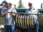 Today's 1/2 day trip was with a couple of great guys from the Iron Mt. area. Bob and his buddy came over last night so we could get a nice early start on the water. We left the Gladstone harbor shortly after 6 a.m. and headed for the weeds to pitch some jigs. Unfortunately the back side of the cold front was just passing through and we had a pretty strong west/northwest wind, making it very hard to stay on our spot. We did manage to catch some fish pitching 1/4 oz. jigs and 1/2 crawlers, but only two of them were keepers. We then made a move north and got out the harnesses and boards. We only had time to fish two spots up north, but we caught some fish in both locations. Lots of short fish today, and only 8 keepers for the guys to take home, however we did have several nice fish come un-buttoned. A couple of northerns and some sheepshead kept us busy too. Not the greatest day on the water by far, but it seemed that the bite was picking up as the water was warming up just before we had to head in. Hopefully tomorrow will prove to be better with a nice south wind predicted. Walleyes Choice harnesses in I-62, I-42 and purple were the best colors today. Here's our fish from this morning, good luck from all of us in the Bay de Noc area. Captain Ken Lee Bay de Noc Charters www.baydenoccharters.net
