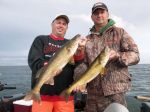 I had the chance to do some fun fishing the last couple of days with some good friends from lower Michigan; Dale Whaley and John Brockway . We did a lot of casting for pike with spinnerbaits, tossed tubes for smallies, and of course I had to take them walleye fishing for table fare. We didn't have as much luck pike fishing as I thought we should have, but the size of the smallies more than made up for it. Most of the smallmouth we landed averaged 3 to 4 lbs., and we lost a few that were easily over 20 inches. Like Baitshop Guy says...it's an "addiction". We were having so much fun with the bass that we didn't head to our walleye location as soon as I wanted, but it didn't matter because the walleyes were biting pretty darn good. We had several doubles, a triple, and lost several fish at the boat. Winds were a little more brutal today so we came in early. Fish were not as cooperative either with the passing of the cold front and strong west winds. I was looking forward to the Wheats Tourney tomorrow, but unfortunately had something come up and won't be able to participate. Here's some pictures from the last couple of days fishing. Good luck from all of us in the Bay de Noc area.