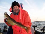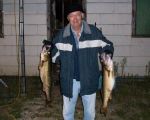 Yesterday I had the pleasure of having three generations of the Otten family on board. They arrived from the Milwaukee area around 2 p.m. and we loaded up and headed out. I always look forward to fishing with Henry, Gene and Nick, we always seem to have a great time whether the fish bite or not. Well...we were fortunate and the fish were biting for us. We started out at the north end trolling Walleyes Choice (http://www.walleyeschoice.com) harnesses. We were fishing over the tops of some weeds in 7 to 12 feet of water and the fish were biting as soon as we got out. After losing the first three fish I thought we were going to be jinxed, but we finally started getting some all the way to the boat. I-62, C-5, and I-76 caught the most fish. We did this for a few hours and then it was time to head a little farther south to get ready to troll crankbaits in the evening. We had a great south/southeast wind giving us a good chop and it seemed to have the fish biting too. We could have stayed out and caught fish all night I think, but we knew today would be another long day on the water so we headed in to get some shut-eye. We also caught the biggest sheepshead I've ever seen in my life, unfortunately we didn't get a picture of it, but it was easily pushing the 15 lb. mark. I know that sounds big...but I've caught a 12 lber before and this one dwarfed that one. Here's some pictures of yesterdays trip (minus Nick, he went to take a hot shower), good luck from all of us in the Bay de Noc area.