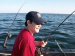A little slower bite for us yesterday afternoon. We got on the water shortly after 4 p.m. for a 5hr trip and headed out to troll Walleyes Choice spinners behind in-line weights and bottom bouncers. We did start catching fish right away on our first pass, but the rest of the afternoon was much slower than the previous couple of days. The fish seemed to still be there, but in a much more neutral mood. Many light bites and a few lost fish yesterday. We still managed 11 nice fish for the guys to take back to camp. No particular color was better than another, but you can't go wrong with I-51 or similar. The moon was coming up just as we pulled lines and it was a beautiful ride back to the harbor. Here's some picture of yesterday's trip. I don't know how long this nice weather is going to last, but it sure is nice after such a cold summer. Good luck from all of us in the Bay de Noc area...