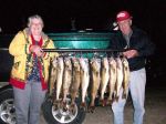 I had the pleasure of fishing with some very nice folks from Black River Falls Wisconsin yesterday afternoon. Lee and Carole have been wanting to make this trip for a couple of years now. We finally got them out on an absolutely gorgeous day. In fact, I think it was too nice for the first couple hours of the trip. No wind and very bright conditions had our fish pretty skittish. We got on the water at 4 p.m. and had our lines in the water around 4:30. At 7 p.m. we only had two fish in the box and had lost another two, they were biting pretty light too, just barely holding on to the harness long enough to get the hooks into them. I decided that we'd stay out a little longer if needed since it was so nice out and they came so far to fish. We made a couple of passes over some structure with crankbaits...it was worth it! They got to see just how good the fishing can be and how fast you can put fish in the boat when you finally find some biters. They both commented that this was, "the trip of a lifetime". Sometimes a plan comes together. We wouldn't have had to stay out much longer at all, but we kept losing fish for some reason. I think Lee lost 4 or 5 nice ones, three of them right at the boat as I was reaching for the net. Frustrating...you bet, but in the end he caught up to his wife Carole and they each landed some very nice fish. Here's a picture of our catch, good luck from all of us in the Bay de Noc area.