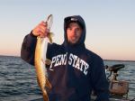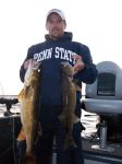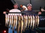 I look forward to this week every year because not only do I get to spend some time chasing other fish than just walleyes, but I get to fish with a couple of great guys that have become really good friends over the years. Patrick Scheidt and Jeff Koopman from the Chicago area and I have been plying the waters of both bays this week. Monday we chased smallies and pike on Little Bay. Fishing was slow, only a few bass and pike. Tuesday we headed to Sault Ste. Marie to fish salmon with a buddy of mine, but the salmon have not shown up yet in any numbers and we got skunked. Wednesday we golfed 18 holes and realized that it's more frustrating golfing than fishing! Yesterday we headed out from Esky around 3 p.m. and the 5-10 mph winds they were forecasting were more like 15 -25 mph so we stayed in the bay and I went back to a technique I used to use many years ago when the wind blows hard and it's impossible to troll, jig, etc. We drifted floaters tipped with crawler halves along sharp breaklines and the fishing was fantastic. We limited out with some really nice fish. Most were in the 18 to 20 inch range, but we did have a 27 1/2 incher that didn't make it after a long hard battle, so we had to keep it. We headed back in at dusk just beating the rain showers. Today we headed to Big Bay and got on the water shortly after 9 a.m. We had an incredible day on Big Bay today with well over 100 smallmouth caught as well as one nice northern. All the fish were released. Nothing big today, I think the biggest bass was around 16-17 inches, but man do they fight. We caught fish on tubes, rattle traps, x-raps, grubs, spinnerbaits, you name it and the smallies were all over it. We saw three or four fish in the 20 inch range that followed us up to the boat, I guess they'll have to wait for next year. It was a strange week, we caught several walleyes on spinnerbaits, pike on tube jigs, and a salmon while casting a husky jerk. Here's a few pictures from the last few days, good luck from all of us in the Bay de Noc area.