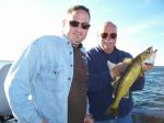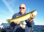 The last two days I shared the boat with my brother-in-law Rob and his dad Dave from downstate near the Ann Arbor area. It was nice to spend some time with family and not have the pressure of a charter. Yesterday was pretty choppy in the afternoon so we went back to what was working on Thursdays trip. We drifted the breaks with floating jig heads and crawler halves. We got into some smallies at first, then it was nothing but walleyes the rest of the afternoon. We ended up keeping 12. Today we had another nice south wind. We decided to troll harnesses today and it took us just under 3 hrs. to fill our 3 man limit. We had planned on staying out after dark to try and get Dave a big fish, but with our limit in the boat and having a long drive home tomorrow, we decided to head in. I'm not sure about those guys...but with a few days off now, there's going to be some fish fry's at the Lee house. Here's some pictures from the last two days, good luck from all of us in the Bay de Noc area.