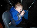 Yesterday afternoon was a special day for me, I got to take my 4 yr. old son Cameron out on the bay for his first time ice fishing. He would have been out there sooner if not for some worries by mom, but that's understandable. Actually...she said when we got back that she probably won't see her son as much because he'll always want to go fishing with me. In fact...he wants to go again today already. We hitched a ride with Uncle Kevin and we were all set up by a little after 5 p.m. Kevin called us on the radio about 5:45 and said he had his first keeper on the ice. We didn't mark much for the first hour, but from 6:30 until dark I marked the most fish I've seen all winter. After some hot chocolate, Cameron learned how to jig and see the fish on the graph, etc. And then it happened...a fish hit his #5 clown jigging Rap and he was "hooked". As a father...it was so nice to see the smile on his face after bringing in a fish all on his own. It was just a tad undersized...but that was another lesson learned, and back down the hole it went. As for my fishing...I lost a nice fish half way up, I lost another one about 17-18 inches right at the hole and I missed several hits. They were biting very subtle in our location yesterday. I didn't care if I caught anything or not...my mission was accomplished when my son asked if we could go again tomorrow. Here's a few pics of Cam's first ice-fishing trip!!!!!