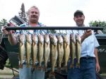 My brother Kenneth had Steve McNally from McBain (lower Michigan) with him on todays trip. They waited for the rain to pass this morning and got on the water somewhere around 9:00 I think. Kenneth said they had their limit by 10:47 but released the tenth one so they could keep fishing! They then culled for the rest of the trip releasing smaller fish as they caught bigger ones. They initially caught their limit trolling Walleye's Choice spinners withI-80 once again being one of the top colors. When they started culling, they changed up and drifted Lindy Rigs along the breaks. The best color floater today was orange. Or anything that at least had a little orange on it. You have to love the warmer water temperatures this year as the warmer water sure is making for some great fishing. The great fishing should continue for the rest of the season now since there is nothing to hurt the bite like Mayflies or Alewives. Might slow for a couple days after a cold front, but that's about it. Summer is going fast, better get out there folks...