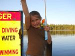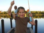 Though we didn't catch the "keepers' that my brother and his kids did today, we had just as much fun! My wife Theresa and I took my niece's daughter Sierra to Hamilton Lake this evening for bluegills. We just fished off shore and only caught two that would have been keepers, but I don't think that made much difference to Sierra! All the little ones kept us plenty busy. Hamilton Lake is just south of Loretto off US 2 (between Escanaba and Iron Mountain). This is a great spot to take the youngsters (or old farts for that matter). My dad caught some really nice bluegills here over the summer, but I guess the bigger ones must have moved a little deeper. Might have caught more if "Uncle Kevin" didn't cast into the weeds too! Anyway, better get out there folks before this awesome weather goes bye-bye!!!