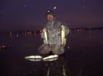 The newer ice is really clear! First pic is my first fish of the night just before it got tangled up in my transducer. It's kinda hard to see, but there's another fish showing on the graph. After unhooking this fish, I dropped the bait back down and caught the second one.