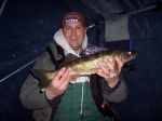 As far as a night bite, it's been my experience that there is (or can be) a decent night bite, but it usually doesn't kick in until about 2 hours or so after it gets dark. When we were guiding ice fishermen, many times we'd keep them out after dark if there wasn't much of a bite at "prime time". Many times the fish started biting a couple hours after dark, after all the commotion and noise was gone from anglers leaving the ice. Also, most of the time when we had a night bite, we were fishing shallower flats and weedy areas where walleyes go at night to feed. While fishing the morning and evening "prime times", 90% of our fish come jigging. However, after dark, it was about 50-50 between tip-ups vs jigging. We kept just enough light in the shanty to see, too bright and you'll spook the fish. As far as colors on our swimming jigs like Rapalas, Ice Darters, and Nils Masters...it seemed to be that firetiger was by far the best producer after dark. If you set tip-ups after dark, keep your baits up off the bottom at least 3-5 feet, and if in deeper water (20-30 feet)...we've had very good luck putting baits as far as 10-15 feet off bottom after dark. Walleyes can see just fine after dark, and they will come up a long ways to grab a bait, but they typically will never go down to hit a bait. Good luck...