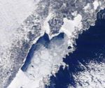 The most recent satellite. Kind of strange how that sliver of open water shoots right up towards Esky! Let's see...tomorrow's foreast says south winds 20-30 mph. We might jst see that ice sheet back here tomorrow.