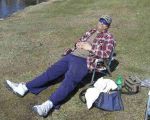 No boards, no linecounters, no leadcore, no gps and a lot less hassle! That's part of the appeal of catfishing for me. A few hooks and sinkers and some cut up sucker and you are good to go! My wife Theresa and I went for a ride to the Menominee River to see if the cats are active yet. The first place we fished she had on a nice pike which did a quick release right at shore, so that worked out nice. It was probably 33-34 inches. No cats here. The 2nd spot was good for one cat. We have caught much bigger, but a decent start none the less. Had high hopes after catching that first one since we hadn't fished our best spots yet. We kind of have a "milk run" of spots we hit when fishing from the bank. We fish a half hour to forty five minutes or so, then on to the next spot. Well, sometimes the best laid plans do not always work! Our last 3 spots were worthless due to high water. These spots are normally holding areas for the cats to rest up before shooting over another long riffle. But with the high water, there isn't any shallow riffles now!!! So nothing to keep the fish in the holes. Oh well, it felt good to sit along the river and soak up the sun. Don't think I'll have any trouble falling to sleep tonight because (as the picture shows), this catfishing is a lot of work...