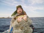 Anchored up and started fishing. We had fish under us pretty much all of the time, but the bite was slow. In several hours of fishing, we caught 8 or 9 perch and a couple small walleyes, and only kept 4 of the perch. Water temps were 39 to 42 degrees. It needs to warm up another 10 degrees before the fishing really heats up.