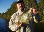 With all the wind Sunday, my dad, myself, and a buddy of mine headed inland to look for some crappies. We did really well this time last year, and hoped to duplicate our success. Well, we didn't. Water temps last year in the same lake were 55 to 60 degrees. This trip, it was about 10 degrees cooler, and the bite was off. We ended up catching 6 small pike, a largemouth, and only one crappie. On the plus side, it was a 13 incher! It'll probably be at least another week until they turn on. This lake has a sand and rock bottom, and will take longer to warm up. If you know a lake with a dark bottom, downed timber in at least 3 to 4 FOW, and temps in the mid to upper 50's, you might want to check it out!
