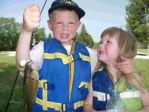 Well...I had a great day off today, I got to spend some quality time with the kids. We grabbed some lemonade and worms from Sall-Mar and headed out to try and find some panfish. Our first stop was the Esky harbor. We didn't find much action there so our next stop was behind Dam #3 on the Esky River. It took a little while, but the fish finally started biting a bit and the kids had a blast, even though it was 90 some degrees. We didn't stay long because of the heat, but we did end up with 7 nice keepers and released probably 20 or so small blue-gills and rockies. By the time we got home the air temp. in Cornell was 98 degrees...boy did that change when the cold front came through tonight. I also had a good conversation today with local CO Reid Roeske about how much fun it is to take our kids fishing. Does it try your patience some days? Of course, but the rewards are priceless. I've always said the world would be a better place if every kid had a rod and reel. Reid also reminded me of the "pocket park" in Escanaba and that many people don't realize it's free to take your kids fishing there. I was at a birthday party there last summer and boy did the kids have a blast, and the fish in that pond are beauties. Here's a few pics of our fun in the sun.
