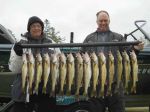 Well...it was day two with the Otten family, but today we were minus Nick, who stayed back at the Resort. Henry, Gene and I headed out to fish in a cold windy drizzle. For the first few hours it was some tough fishing, with mostly little fish being caught. The water temperature had dropped another 4 degrees overnight down to 60 and I knew the fish were going to be sluggish, so we changed our tactics and slowed down and drifted with floating jig heads tipped with 1/2 crawlers. We didn't have a keeper in the boat at 1:00 p.m., and at 2:30 we had our 15 and were ready to head in early. I think it's the quickest I've put 15 fish in the box in a long time. It pays to be versatile. Everyday sure is different out here...we'll see what tomorrow brings! Good luck from all of us in the Bay de Noc area.