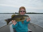 My wife Theresa and I launched the SS "It Floats" for a couple hours yesterday with the intention of doing nothing but casting for pike since it was a perfect day with cloudy skies and light rain off and on. Long story short, we only caught a couple small pike amd she caught one decent smallmouth bass. What I was amazed at was how little weed growth there is in areas that are usually just about unfishable at this time of year because the weeds are so thick. I guess it's just another example of how cold a spring we had. Theresa ended up rowing us in the last 300 yards or so due to our batteries running out of juice (what a great wife!).