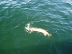 Worked the weedbeds and shallow flats between Escanaba and Gladstone Friday evening. I was throwing musky baits looking for bigger pike, but only crossed paths with small ones. Landed three pike, with the largest being a 30 incher that t-boned an 8 inch Grandma bait. Also caught 17 and 18 inch smallmouth on Senko and a spinnerbait. Water temps in the bay were still in the upper 60's.