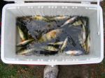Personally, I thought Brian and Ed were fricken crazy to go out fishing in the conditions we have today. I guess I'm just getting old! That said, they just came back with 45 really nice perch. They all came on 2 inch minnows below slip bobbers. I take that back, they had a few bigger minnows mixed in with their perch minnows, but when suspended below a bobber, nothing would bite the bigger minnows. When they allowed the bigger minnows to swim freely with a slip sinker laying on bottom, the fish would bite the bigger minnows. That right there is a perfect example of why I give up trying to figure out fish!!! If it works, it works. If it doesn't, change it. I think Brian counted 45 as he took them out of the livewell. I'm hoping to talk them out of a few for dinner...