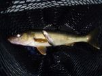 I got out briefly Monday evening for a quick bass trip along the West Bank. Wind was still howling at the start of the trip, but it was enough out of the west to keep the wave heights reasonable. In a hour and a half of fishing, I boated 7 smallies, lost 4 more, and even caught a walleye, (normally not unusual, but that's the first one I've caught in a couple weeks of dragging suckers!) Second drift I doubled up on 19 and 19 1/2 inchers, (the two big fish of the trip.) By the third drift, I had to pull in the drift sock because the wind had died to almost nothing, (trollers should have had a good night on the upper bay.) Three of the bass , and even the walleye, showed obvious signs of being hooked before, (released tournament fish?)