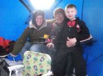 Some of the best memories I have from growing up are the times the whole family went ice fishing. It wasn't uncommon to be out in the shanty 4 or 5 days a week on Lake Cadillac catching perch. My mom, brother and I would either still be in the shanty when dad got home from work and he'd join us, or we'd be home with a bucket of fish for him to clean when he did get home. Yesterday was the first of many family days on the ice for my family. We met up with Mike Furmanski and his two daughters Brooke and Caroline and hit an inland lake for bluegills and pike. Grandpa Bob even came up and joined us and was a nice surprise for the kids. Normally my kids would be sitting butt on a bucket fishing away like daddy, but yesterday they had other plans. They played more on the ice with their new friends than they fished...but that's all part of it too. Let them have fun so they will want to go again. Furball was having steady action on the tip-ups...but all the pike were like 15 inchers. I was having pretty steady action catching gills (in between watching kids, pouring hot chocolate, un-tangling lines, etc.). I cleaned 24 gills this morning which I will cook when I get home from work tonight. Here's a few pics from our day on the ice.