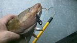 Captain Keith Wils sent me some of the new lures he makes for me to try. They were the Double Truble Jigs in the 1 oz. size. I took them out and gave them a test ride on BBDN for whitefish. First off I put the black one on and tipped it with a minnow head on one end and a minnow tail on the other end.  I only fished for about ten minutes and hit something solid. The way it hit and stayed on the bottom told me it was a burbot.  I landed that one and with in the next hour I iced three more on the black jig. I figured I had to change lures and bait so a switched to the pearl one and tipped it with three wax worms threaded on each hook. It was game on...In the next few hours I iced four nice whitefish and lost four others. Along with those I also lost four other burbots. So I would have to give the Double Trouble jigs a BIG thumbs Up.