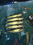 This morning I went out by myself south of Gladstone. I was set up and fishing by 7 in 28fow. I had my limit of eaters by 9:30. 1-16",2-17", and 2-18". 3 of them came on #7glow hot perch and 2 on a #5 fire tiger rapalas. I did not tip them with anything. I only marked 12 fish. I also lost 1 half way up and missed 2, so the ones that I did mark were fairly agressive.(I cant get any photos to load)