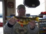Mark Gehreke just stopped in with a 14" 1 1/2 pound perch. Says he's catching about a 1/2 dozen or so per day like this. That's about all a guy needs when they are this big!!! Thanks for sharing Mark. I think he said his rental shanties are full this weekend, but has some openings next week. He can be reached at 906-203-1914