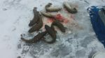 I went fishing for whitefish today but didn't do very well. I ended up with Nada one. None...Zip...Zilch. But I did do pretty good on the burbots. There was a couple more that I caught that aren't in the picture. I also had 3 or 4 more that I lost. No whitefish but I had fun fighting those burbots.