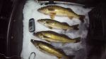 I got on the ice early today and was rewarded right away icing my first walleye about 3:00 . Surprised the heck out of me since I only had on a tiny #3 GGT Rap. I was marking fish like crazy but they would not come off bottom. I thought maybe they were schools of smelt so I tried the tiny Rap. Anyway, about 3:25 I caught another nice eater. This one came on a spoon tipped with a gulp minnow. Just when I thought to myself "if this keeps up I'll be done early" the current picked up and the fish quit biting. I was still marking them, but could not get them to hit for nothing. Went through a ton of different baits and was pretty frustrated for awhile. Then I lost another that felt like a keeper on the spoon/gulp combo. Then I landed another keeper on the spoon/gulp and ended the evening catching the biggest one on a #9 Purple Parrot. I think I said #7 in the video, but it was a #9 (don't have a #7...yet) . Had one flag and the fish dropped the bait before I even got to the tip-up. All in all, a pretty good afternoon and evening. Fish went from 18-22 inches. Perfect...