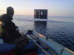 Here is a picture of some folks attempting to retrieve one of Dale Strochein's shanties that went adrift down at Sturgeon bay. I guess they got most of his shanties back, but not all of them.
