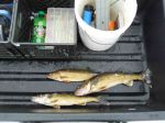I got a late start this morning due to a case of the "scoots" and thought about not even going since I was so late, but you never know. Didn't get on the ice until almost 7:30. You want to see someone drill a hole fast and get their bait down, it was me. Anyway I caught 3 keepers (17,19,and 20 inches)  between 7:50 and 8:30 and came in at 9:00  cuz I felt "round two" coming on. All three fish hit a #9 Glowtiger kept 4 feet off bottom. Would have had another one if I had not gotten so excited and jerked the bait before the fish hit. It absolutely left a vapor trail and I jerked it right out of it's mouth!!! Had another fish 12 feet off bottom but just could not get that sucker to bite. Marked a total of 13 fish this morning...