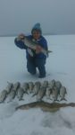 It was my wife and my anniversary today and she wanted to go and fish for whitefish. We got set up by 8:00 am and didn't do too good at first and then they started to bite a little. It was her first time fishing for them and it was slow going for her. I managed to ice three whitefish and one lawyer at this spot. We moved and really started hitting them. I caught few more and then Barb hit her first whitefish. It was a nice one by the way she fighting it and it ended up being 23 inches. GREAT job Barb. By the end of the day we ended up with 16 whitefish and two lawyers. GREAT GREAT day with my bride. Thanks Barb.....