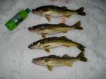 Got on the ice about 2:30. Holy crap was it windy. Thankfully it died down. I figured it would be a late bite once the sun came out, and I was right. I missed my first fish at 5:45. Got too excited again! But hey, what do you expect after staring at a blank screen for over 3 hours. About 10 minutes later I landed a nice 17 1/2 incher. Then I had several fish come through without hitting before catching another nice eater. Then I thought I would show our audience the proper way to miss fish. Yah, right!!! Good lord, I think I missed 3 in a row and then wound up with a rats nest around my pole and had to quickly switch poles because there were fish up the wazoo on the graph. Caught a couple more nice eaters before coming in. Ended up with 4 keepers from 17 1/2 - 20 1/2 inches. The first fish hit a #7 Purple Parrot, the 2nd and third came on #7 Firetiger, and the last fish hit a #9 Purple Parrot. A pretty good evening all in all. Except for the rats nest...And missing too many fish!!!