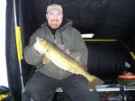 Myself, my brother Kenneth, and friends Jay, Brian, and Derek got on the ice about 4:00. We marked quite a few fish, but today we couldn't hardly get any of them to bite, period. That said, Captain Jay started off landing a nice 25 incher on one of his blade baits (released) plus a couple more eaters. I ended up with a pretty nice Whitefish and two eater walleye myself. The 4 walleye went from 17 1/2 - 22 1/2 inches. My brother, and Brian and his son Derek got blanked. Not often I outfish my brother, so I have enjoy this while I can...