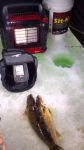 I'm surprised my buddy Ron can even keep his shanty up in this wind, but he has a couple so far this morning. Didn't see too many folks on the ice on my way back from McDonalds this morning and I'm not surprised...