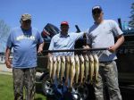 As I sit and write this quick report, the wind that I wanted earlier today has finally started blowing. Today's trip was with long time client Dale DeWildt and his son Mark. We left the resort around 6 a.m. and I had hoped that the wind would start blowing like it did yesterday to get the fish active. Unfortunately for pretty much all of today's trip it was pretty calm. We still caught fish, it just wasn't fast and furious like yesterday's bite. In fact, we didn't get most of our nicer fish until the last hour of the trip when the water temp. got up over 60 degrees and lots of boat traffic left. We were trolling Walleyes Choice harnesses (http://www.walleyeschoice.com) behind bottom bouncers for most of the day. I-86, I-42, I-68, and a firetiger J&K Tackle (http://www.jandktackle.net) in-line harness took most of the hits today. We ended up with 11 nice walleyes and lost 6 others that come off on the way to the net. We've got another half day trip tomorrow and after we do some walleye fishing in the early morning we're going to try for some perch before they have to head home around noon time. Good luck from all of us in the Bay de Noc area.