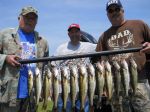 Well...it was day two with Dale and Mark DeWildt.We got on the water about 6:30 a.m. and started marking fish right away in 19-21 fow.We got out the bottom bouncers, Walleyes Choice spinners( http://www.walleyeschoice.com ) (I-42 to be exact), and started trolling at .9 mph.We got 8 keepers and several throwbacks doing this, then decided we were going to try for some perch.I had a couple hundred wigglers left over from perch fishing last month and I'm glad I kept them.We got anchored on a pretty big school of fish and had a blast catching fish...however most of them weren't perch!The walleyes were grabbing the wigglers before the perch could.We caught 4 more keeper walleyes, several throwbacks, some good eating sized perch, and some junk fish like a couple suckers and the first sheepie of the season.The walleyes were a blast on 9 ft. steelhead rods and light line.Once I even had a double, a nice perch and a small walleye. The avg. size fish was a little smaller than yesterday, but mmm mmm good eating! Overall it was a very fun morning of fishing on the bay with some great guys. We saw a couple of guys get their limit tossing jigs, and that's one of the great things about this bay, you can catch fish so many different ways.Seems like it was a pretty good bite today for everyone. Big storms firing up just to the west as I type this...so it's time to shut things down.Good luck from all of us in the Bay de Noc area.
