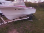 FOR SALE: 17 foot Fiberglass V-Hull boat, 75 Horsepower motor, and trailer. Runs great, has new water pump. lights and trailer jack, also has hydraulic steering not cable. $450 O.B.O. 906- 398-9649