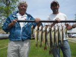 My brother Kenneth had Casey Camp and his dad (name escapes me) out this morning on a 5 hour trip. Kenneth said the bite was a little tougher today with many of the fish just hanging on and not fully committing to grabbing the bait. They ended up with 7 walleye and a couple perch. One of the walleye Kenneth cleaned was plum full of wigglers, so wigglers would not be a bad option to try. You might just go perch fishing and catch a bunch of walleye!!! No video because I screwed up and had not deleted the last charter from the memory chip and the camera automatically stopped recording just as Kenneth got to the Gladstone exit this morning