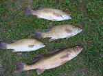 It was a long day fishing today. I got set up be 7:00 this morning to find out it was pretty slow on the walleyes. I fished for 10 hours and ended up with three nice sized smallmouth eaters and one 23" walleye. I also caught several smaller bass and a half dozen sheephead. It wasn't fast and furious but I had a GREAT time. All were caught on crawler harnesses of different colors.