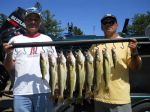 Yesterday's trip was with Randy and Ron, brothers from lower Michigan, who stopped on their way home from Minnesota to do a little fishing on the bay. We got on the water around 6:30 and had action right away trolling bottom bouncers and Walleyes Choice harnesses. We couldn't even get all the lines in the water before the fish started biting. Unfortunately, we could not keep the hooks into a lot of the fish. The early bite was definitely the best, but we did have a flurry of action around 11a.m. putting a couple more keepers in the boat. We put the trolling rods away for the last couple of hours and did some casting of jigs/crawlers, but we only caught one more keeper walleye and some really nice smallies doing this. It was very hot on the water with hardly any wind at all until the last hour when it started blowing a little out of the south. Overall the bite seems to be picking up some. Good luck from all of us in the Bay de Noc area.