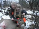 Well, we've been looking forward to this day for a long time. Cam couldn't hunt with me opening week because of his tonsil surgery, so he was really looking forward to getting a chance to go hunting. Noel...she was probably more excited than the rest of us, because this was her first experience out in the deer blind. I could tell Cam was excited when he ran up the driveway after being let off by the bus. They got to hold the rifle (unloaded of course) before we walked to the blind...and boy were they ready! We got out there, talked about being quiet, etc., and it wasn't 15 minutes and 6 deer started to filter through. We watched them for a few minutes, picked out the biggest doe and..."click", a misfire! I think I must have got a bad box of ammo because I had the same thing happen with a shell when sighting in this fall. Well, the deer jumped back a little and gave me just enough time to slowly rack another shell in the chamber. They started moving through again, I told the kids to cover their ears...and..."click". Not again!!! Yup...another misfire. I couldn't believe it. Well...the deer jumped again and I thought it was all over. We had three shells in the rifle, so we were down to our last chance. Unbelievably, the deer stuck around and came back through one more time. And as they say, the third time's the charm! The rifle erupted and our successful hunt was completed. A nice doe for the freezer and some great memories for myself and the kids. One more during black powder season for some jerky and sausage, and it will be time to dig out the ice-fishing gear! Get out there and enjoy the outdoors folks, and don't forget to take the kids.