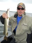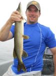 Tuesday we stayed on the little pond in search of pike and bass. We caught somewhere around 20 pike while casting spinnerbaits, keeping three for a nice fish fry later in the week. We also caught some quality smallies on Little Bay, but not the numbers that we get over on Big Bay. Towards evening we did a little jigging for walleyes along a sharp break, but only landed one keeper and some undersized ones. Oh yeah...and I also landed a big carp on a drop-shot rig with a Jackal I-shad. Now that was fun on 6 lb. test!!!