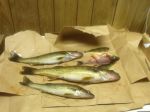 Still exhausted from laughing so hard......sorry..........managed to get out this afternoon and managed 3 keepers and 1 nice perch. Slammed lots of shorties which is nice to see for a change. Nice eaters at 16, 19, and 22 inches. 8 solid inches of perfect ice and pretty slippery under the snow. Won't be able to get out till after xmas now and I got the itch!!! Fish were pretty aggressive today!!! Pimple with yellow + a minnow was best , followed by raps!!!
