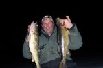 Because of a death in my wife's family, the past two weekends were spent travelling...but I finally got back out on the ice yesterday afternoon and had an awesome time. It was so nice and warm out that I decided just to walk out somewhere and sit butt-on-a-bucket. I got to my first choice of spots but somebody was already there. Drove to my 2nd choice of locations...somebody there too. As they say, "Third time's the charm", and it sure was. I finally got set up about 4 p.m. and had my first fish on the ice at 4:30, a nice 22 inch walleye. This was caught on a #7 glow purple tiger Rap, a color my buddy Ray has been doing pretty good on all winter. It was a pretty steady stream of fish from that point on to about 6p.m. when I packed up. 2nd fish came on a tip-up with a small sucker, this was a 22 1/2 incher. Then I released a 29 inch beauty caught on the #7 glow purple tiger, then I caught a 25 incher that inhaled a #7 firetiger Rap. Then, I had just lost one jigging when a flag popped up. I went to check that tip-up and my other flag popped up, all the while the graph was lighting up with fish. Usually I don't mess around with tip-ups too much, and this was exactly the reason why. When the fish are coming through I like to be jigging! Well...I managed to lose the fish on the first flag, then I got the tip-up line tangled and decided just to pull it up, put it away and go get the other flag. Sometimes it seems like walleyes have some sort of crazy esp...because as soon as I got close to my tip-up the spool quit spinning, and yup...the fish dropped the bait. This was the best couple of hours of walleye fishing I've had so far this ice-fishing season and I can't wait to get back out there. I marked good numbers of fish, some good ones at that, and was able to take some home for the fry pan. Good luck from all of us in the Bay de Noc area.