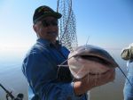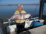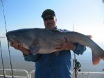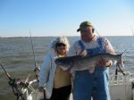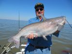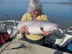 Esther and I went to Santee-Cooper, So. Carolina for a few days of cattin'. Temps were colder than usual for this time of year, big surprise! Fished with a guide out of a big pontoon with an enclosure and heater, the Mrs. liked that! She reeled in most of the fish, but let me crank in a few. 6-10 fish a day, all Blues, all pretty big. Her biggest was a little over 40#, my biggun was right at 45. Quite a few in the 20-25# range, rest 10-15. Released the big ones, kept some of the smaller ones to eat, very good. Not like perch, but tasty. Drifting with cut bait, herring and shad. Blues are a very cool fish, bright colors, fight like CRAZY, but when you get them in the boat, they are pretty calm. Fun trip. Frank & Esther