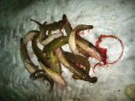 Here is a picture of my Lake Superior Burbot from last night. I Fished from 8:30 to 10:30 64 ft of water and managed to land 14 of them. There not as big as the ones that i catch in Big Bay De Noc, but their still good table fair. Most of them were caught on the bottom, but a few suspend to about 10ft off the bottom to feed on smelt.
