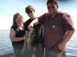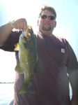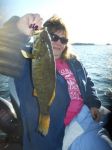 Wednesday and Thursday mornings I fished with the Grewell family from Minnesota. We headed over to Big Bay on Wednesday to try for smallies, but with a morning temperature in the low 40's after a cold front...the bass were very sluggish. We did get some, but nothing like the numbers we're used to at this time of year. I saw many fish swimming along the weedlines we were fishing, but most of them had lockjaw! I even saw a school of alewives swimming in 7 fow, so that might have slowed the bite too, there is a lot of natural food out there right now. We fished Little Bay Thursday morning, and could only manage some pike before we went bass fishing for the last hour of the trip. I wanted Levi to catch a big smallie so bad, but it wasn't to be. His mom, however, did get a giant 22 incher that went well over 5 lbs. I just wish the picture would have turned out. All our bass were caught on fat gitzit tubes.